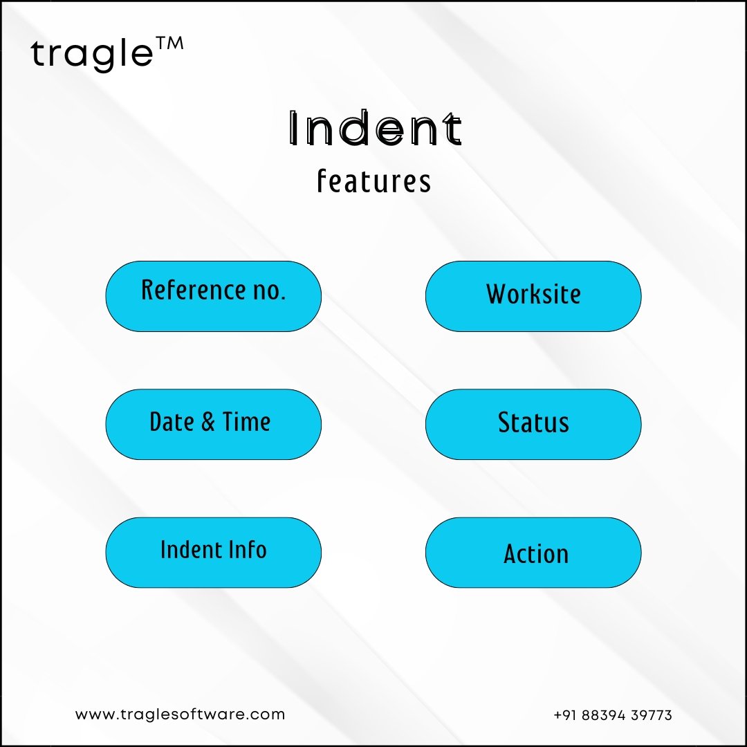 Indent section in a Construction CRM tracks and manages material requests with features like reference number, worksite, date and time, and status updates. It also provides detailed indent information and action options, ensuring efficient processing and fulfillment of material needs.